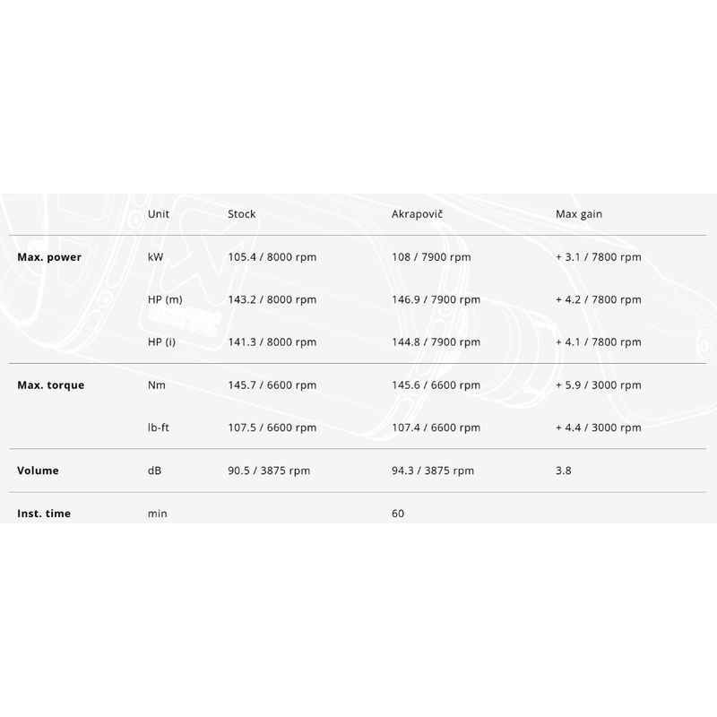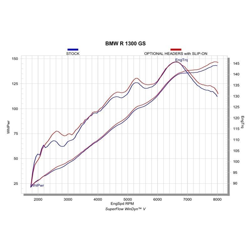 Эти цифры были получены при последовательных испытаниях на динамометрическом стенде Акраповича с BMW R 1300 GS с использованием стандартной штатной выхлопной системы.