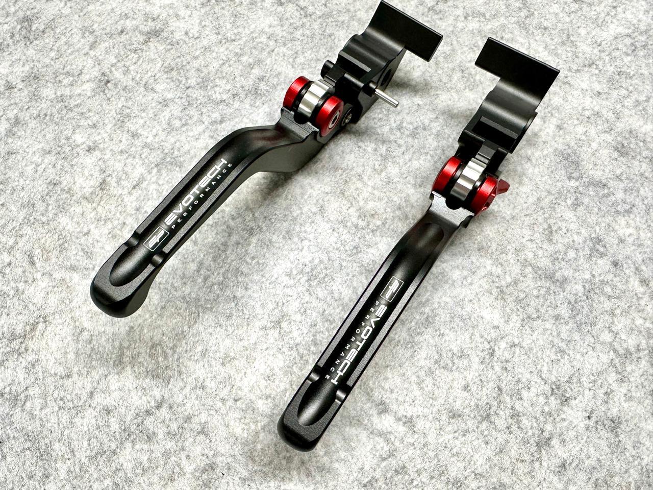 Рычаги от компании Evotech Performance, это качественный, разработанный в Великобритании комплект полноразмерных рычагов сцепления и тормоза, которые полностью регулируются, стильны и менее склонны к поломке в случае попадания жидкости или простого падения мотоцикла, что позволяет вам продолжать кататься. Каждый складной рычаг сцепления и тормоза EP Evo имеет точку поворота, которая позволяет рычагу перемещаться вверх при ударе о твердый предмет. Точка поворота оснащена системой натянутых пружин, которая удерживает рычаг на месте, как и стандартный рычаг, поэтому он не может быть случайно сдвинут руками/пальцами водителя. Рычаги тормоза и рычаги сцепления также оснащены шестипозиционным регулятором размаха пальцев для точной настройки идеального положения рычага.
