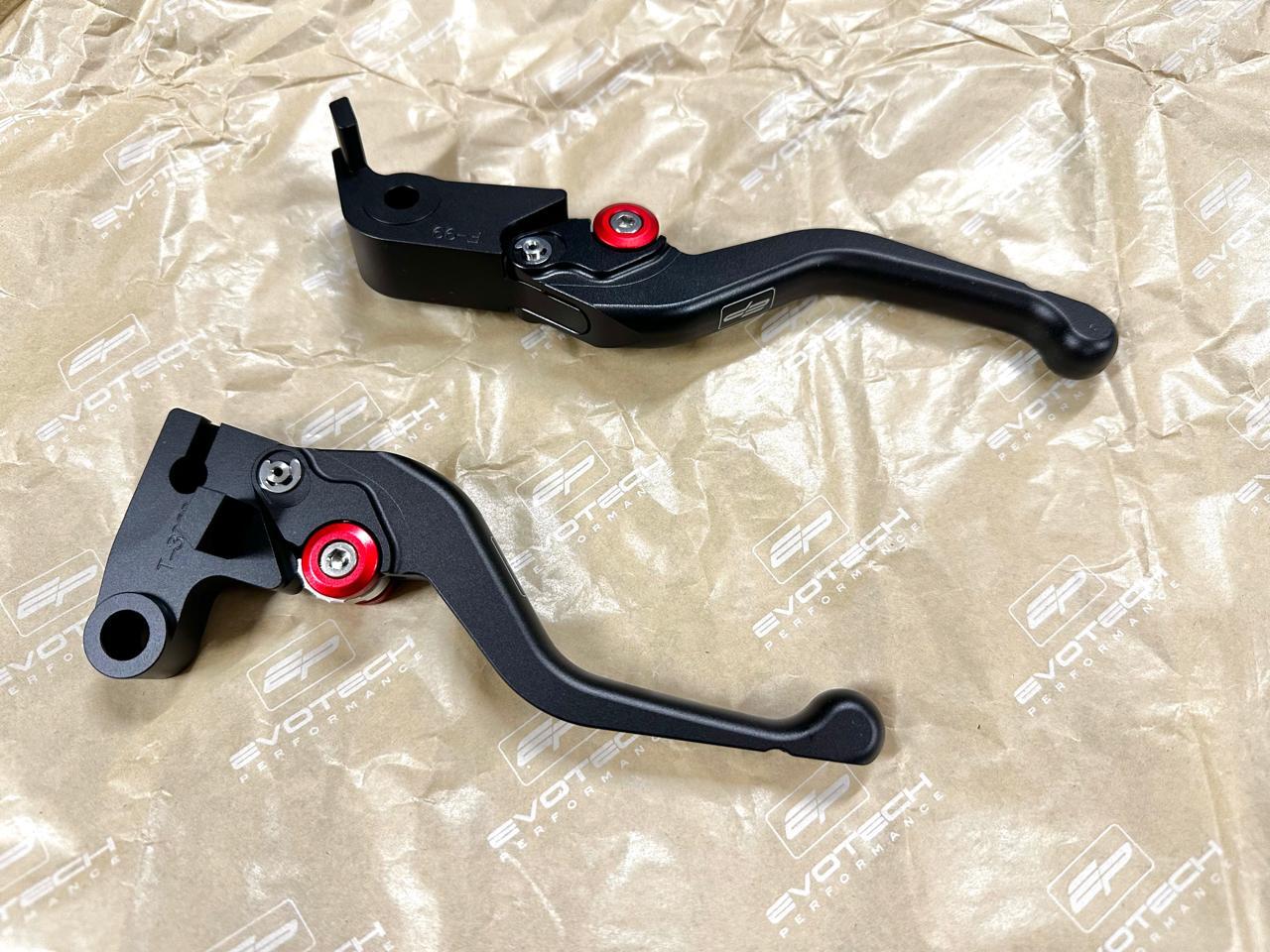 Рычаги от компании Evotech Performance, это качественный, разработанный в Великобритании комплект полноразмерных рычагов сцепления и тормоза, которые полностью регулируются, стильны и менее склонны к поломке в случае попадания жидкости или простого падения мотоцикла, что позволяет вам продолжать кататься. Каждый складной рычаг сцепления и тормоза EP Evo имеет точку поворота, которая позволяет рычагу перемещаться вверх при ударе о твердый предмет. Точка поворота оснащена системой натянутых пружин, которая удерживает рычаг на месте, как и стандартный рычаг, поэтому он не может быть случайно сдвинут руками/пальцами водителя. Рычаги тормоза и рычаги сцепления также оснащены шестипозиционным регулятором размаха пальцев для точной настройки идеального положения рычага.